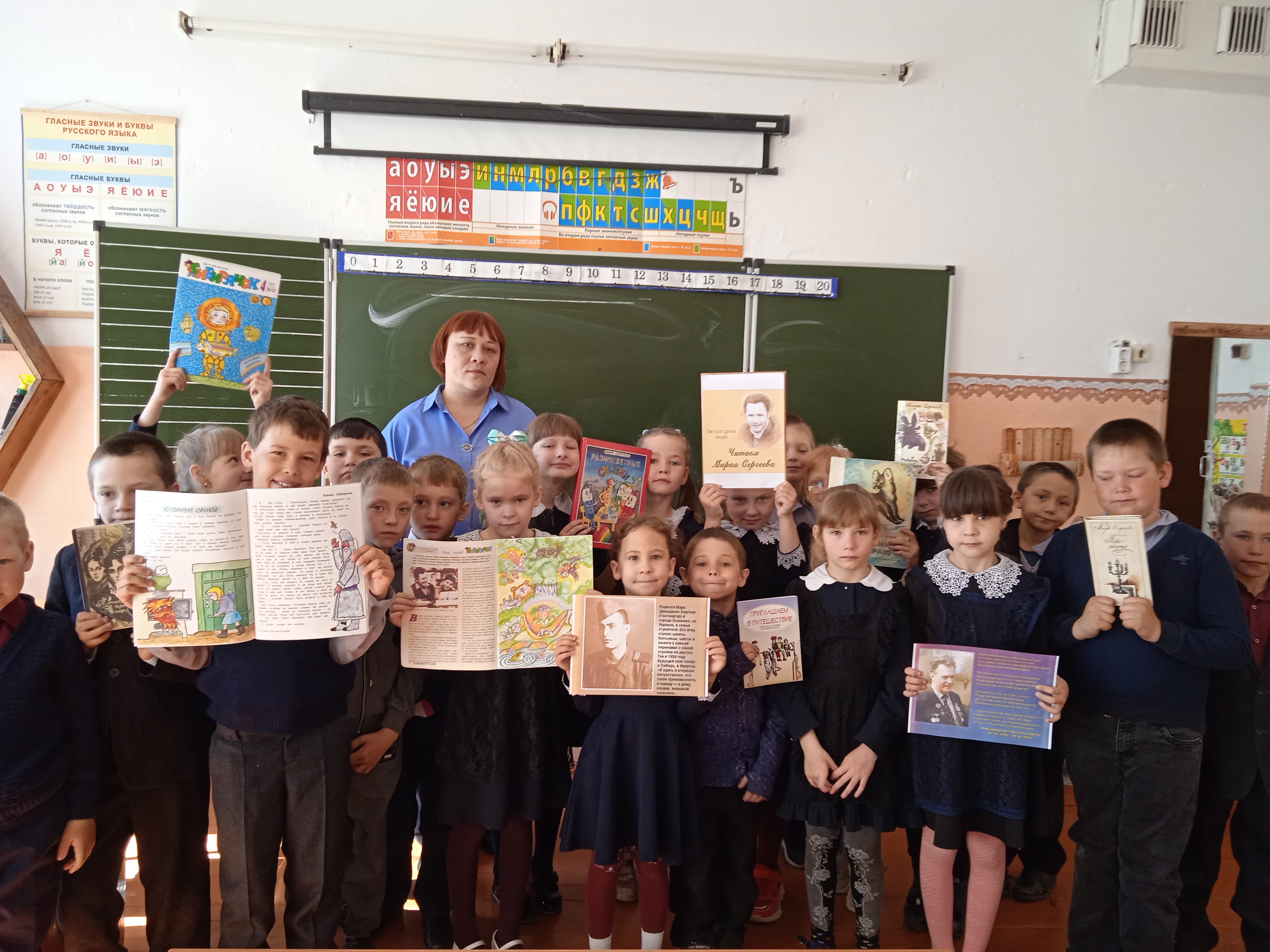14 мая для учащихся 1 класса проведены громкие чтения книг Марка Сергеева «Давай поговорим». Заведующая библиотекой Надежда Ивановна Халиман познакомила маленьких читателей с биографией писателя и его творчеством, прочитала несколько историй из книги «Разноцветные сказки». Ребята с интересом послушали сказку «Как медведь решил бульдозером стать», а затем ответили на вопросы викторины по сказке.